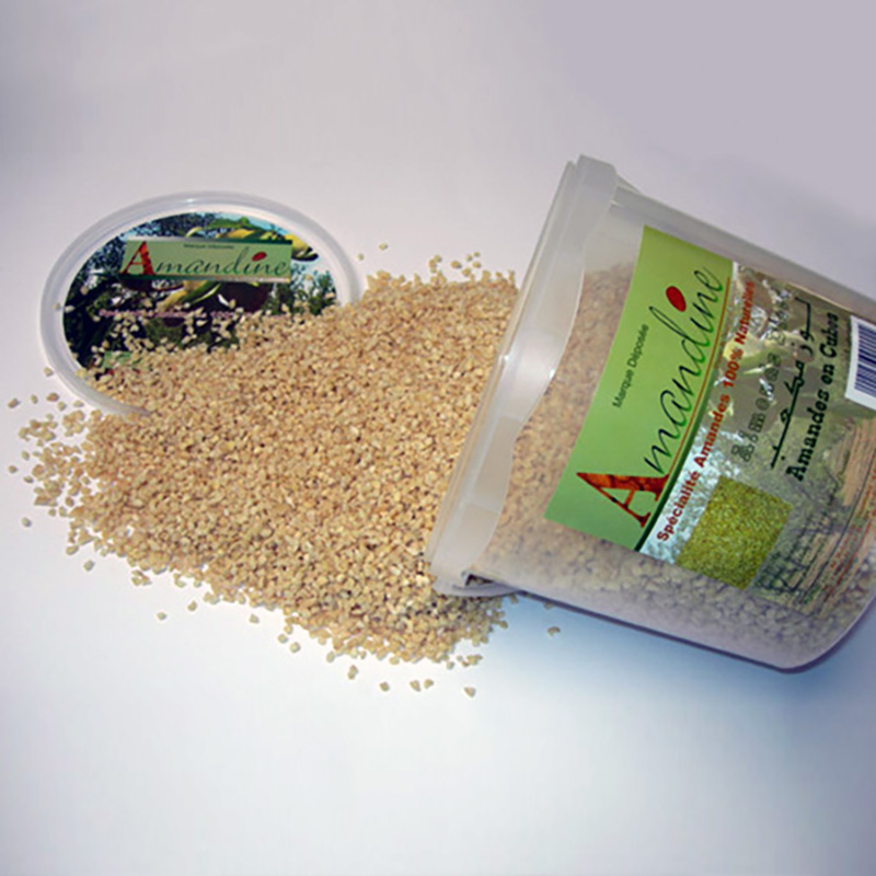 تعبأ مكعبات اللوز خلال العملية الصناعية طبقا للمواصفات المطلوبة.